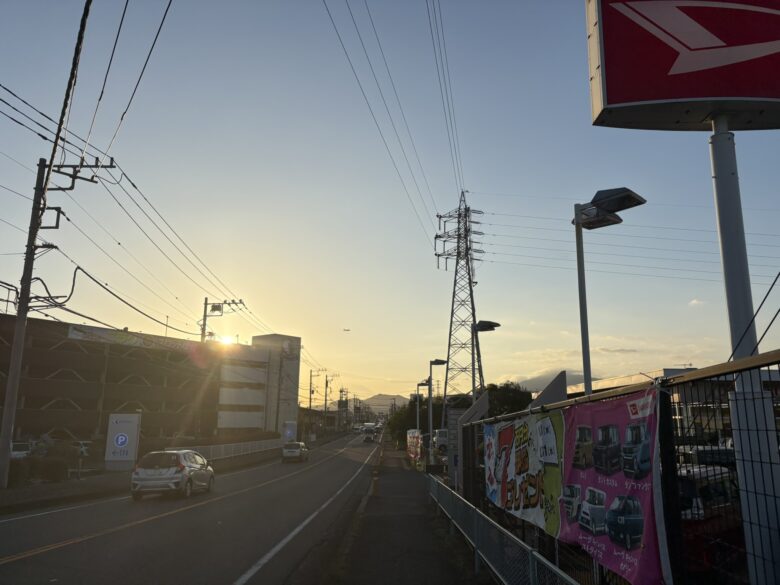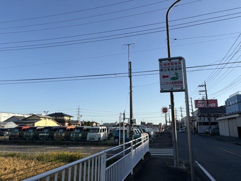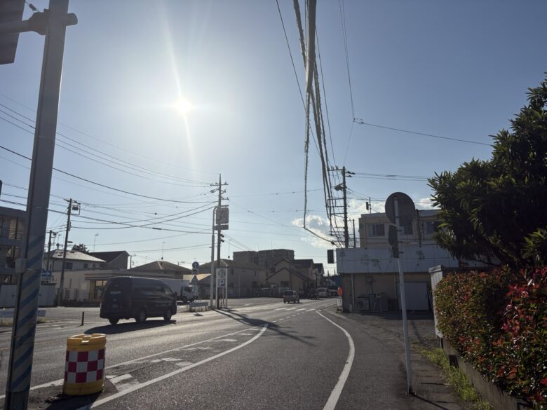 駅前や道中にコンビニは点在していますが、犬と食事ができるお店やテイクアウトは見当たりません。予め用意しておくか、コンビニで調達することをお考えください。